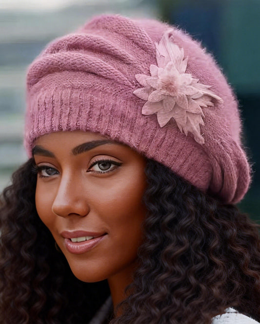 Flower Rabbit Hat Beret Warm Knitted Wool Hat