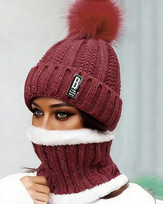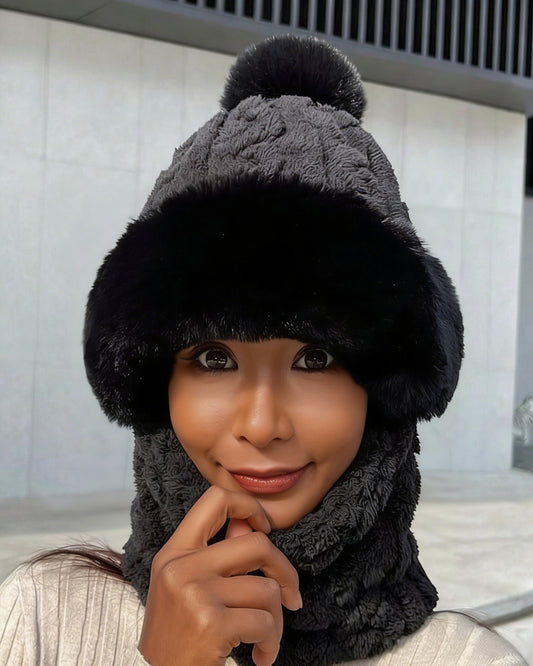 Knitted Plush Warmth-Retaining Scarf-Integrated Pull-On Beanie