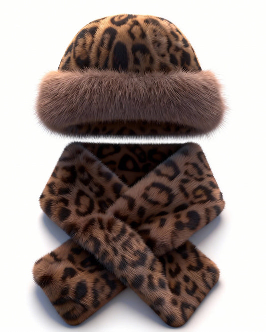 Leopard Print Thickened Warm Fluffy Hat Scarf Set