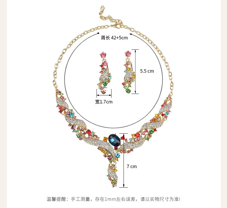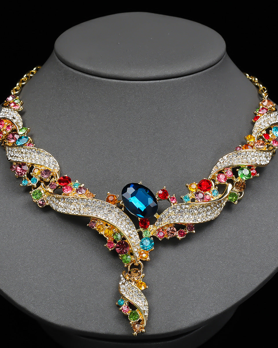 - Style: Exaggerated Necklace Earrings Set Collarbone Chain Decorative Dress Accessories Vintage Fashion Colorful Jewelry