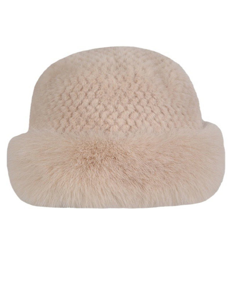 Fox Fur Knitted Texture Thermal Bucket Hat