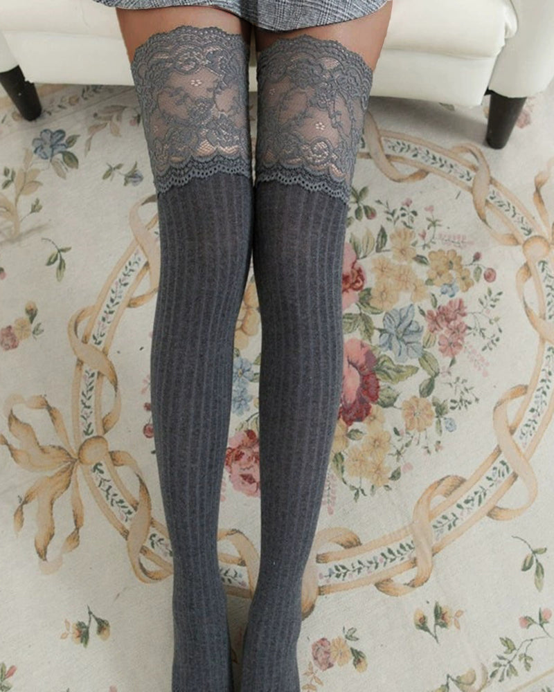 Lace Trim 100% Cotton Warm Thigh-High Stockings