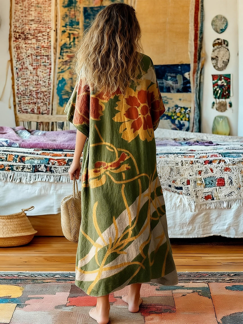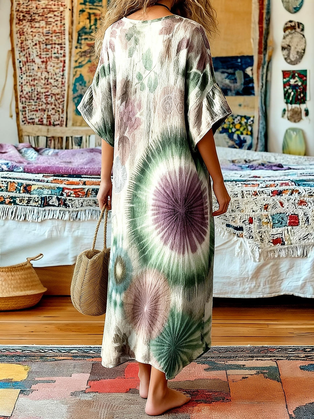 Gradient HIPPIE SOUL Printed V-Neck Holiday Dress