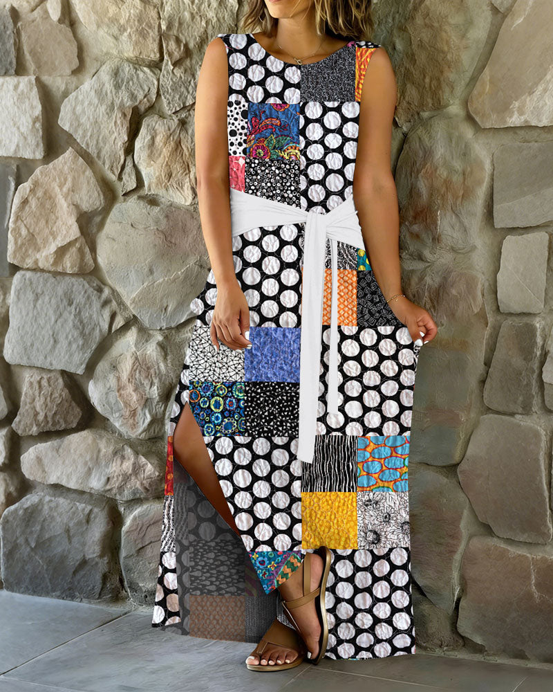 Colorful Splash Ink Print Pocket Crewneck Vest Dress