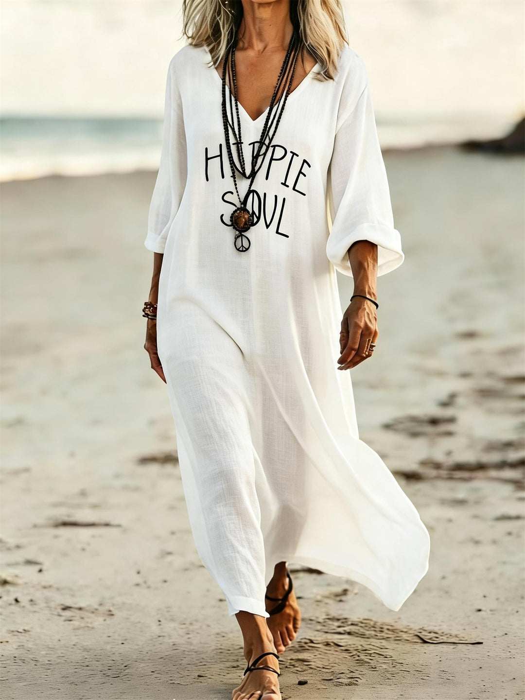HIPPIE SOUL Peace Symbol Printed V-Neck Holiday Dress