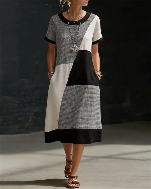 Contrast Geometric Block Loose Dress