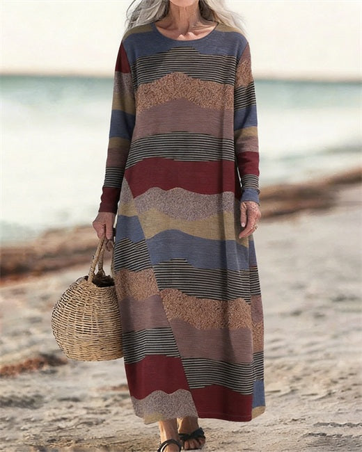 Vintage Striped Patchwork Loose Long Sleeve Dress