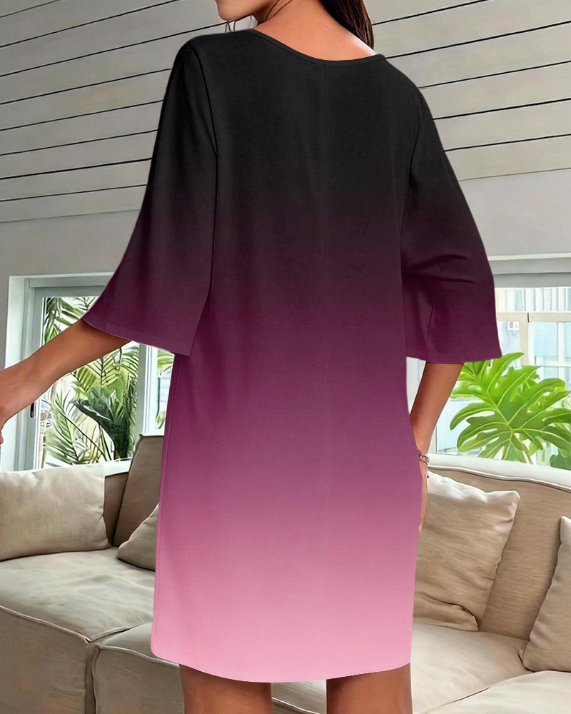 Black And White Sonic Gradient Print V-Neck Mini Dresses