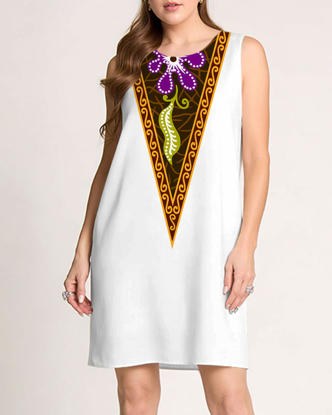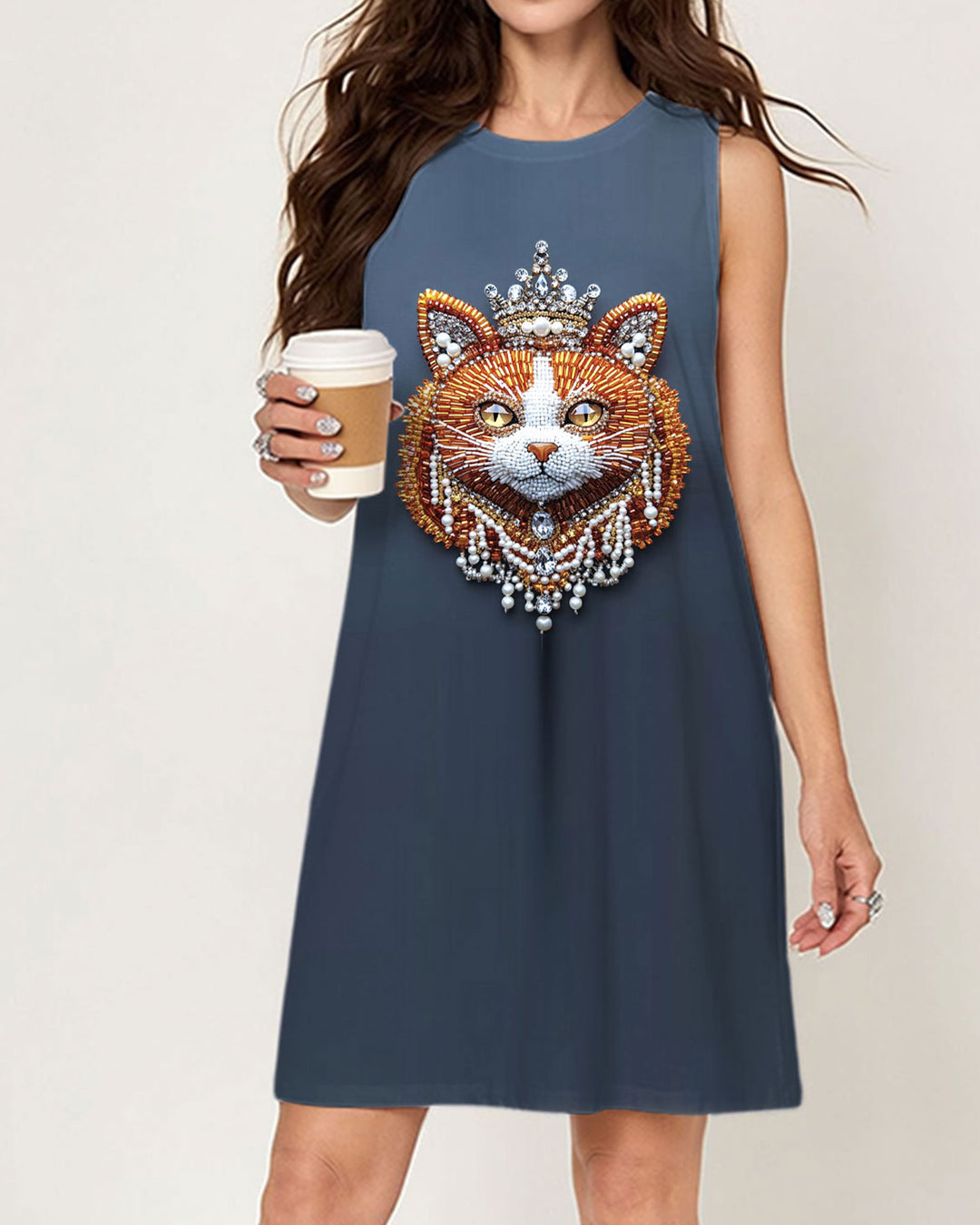 3D Bead Brick Pattern Printed Sleeveless Dress