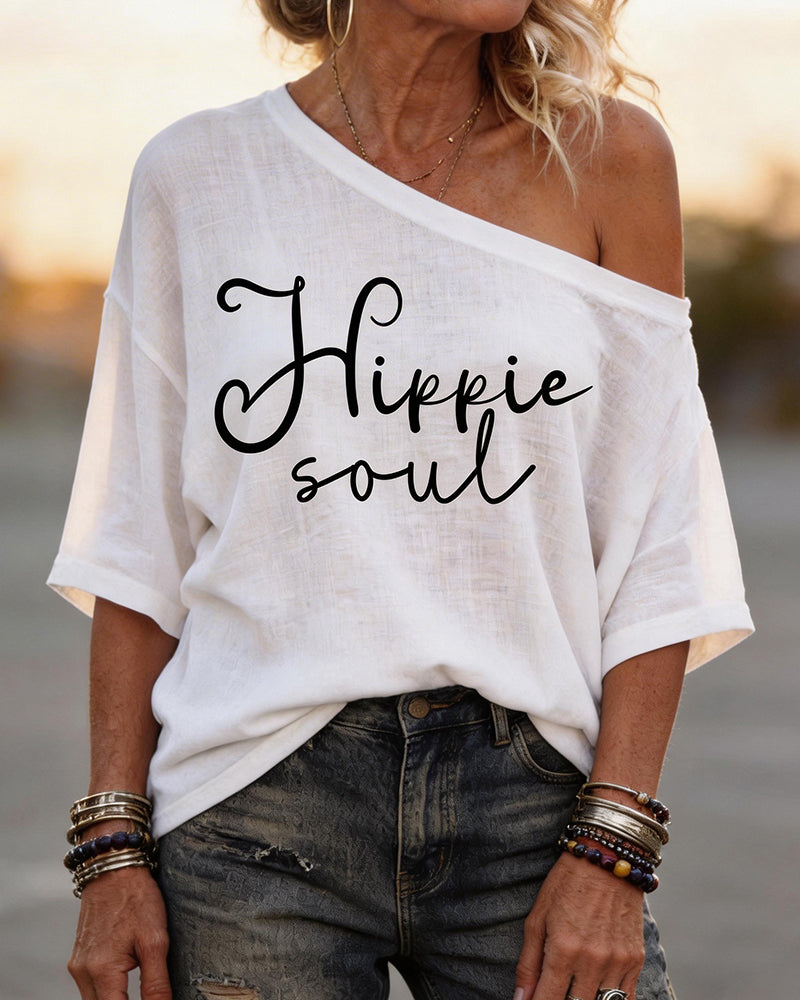 Hippie Soul Vintage Font Shoulder Shoulder Tee